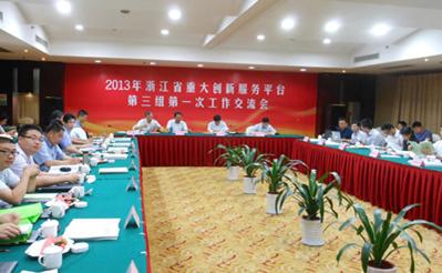 2013年5月24日,2013年度省重大科技创新服务平台第三组成员单位第一次工作交流会在新昌召开。新昌县副县长王军、新昌科技局局长杨卓东、省科技厅王世锋和17个平台相关代表参加了此次交流会。