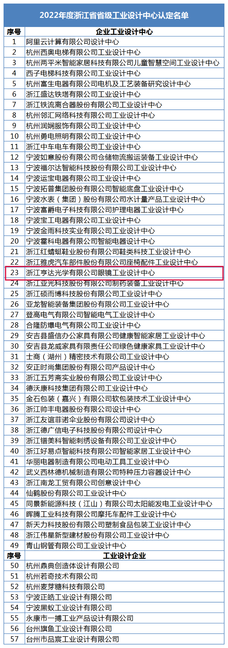 喜讯丨浙江省2022年省级工业设计中心认定结果公布,协会副会长单位亨达光学入选!