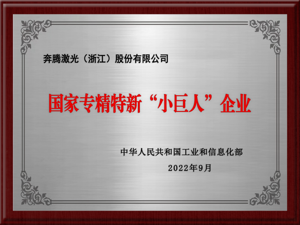 根据近日发布的《工业和信息化部关于公布第四批专精特新“小巨人”企业和通过复核的第一批专精特新“小巨人”企业名单的通告》(工信部企业函[2022]191号),协会会长单位奔腾激光(浙江)股份有限公司【申报时名称“奔腾激光(温州)有限公司”】被认定为第四批国家级专精特新“小巨人”企业。
