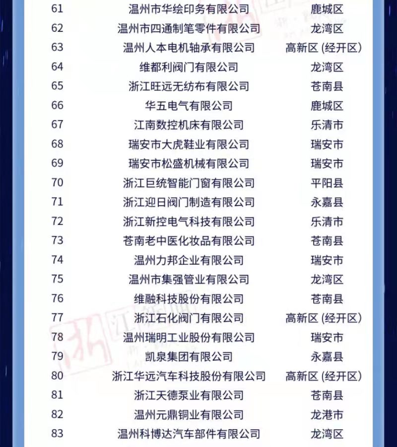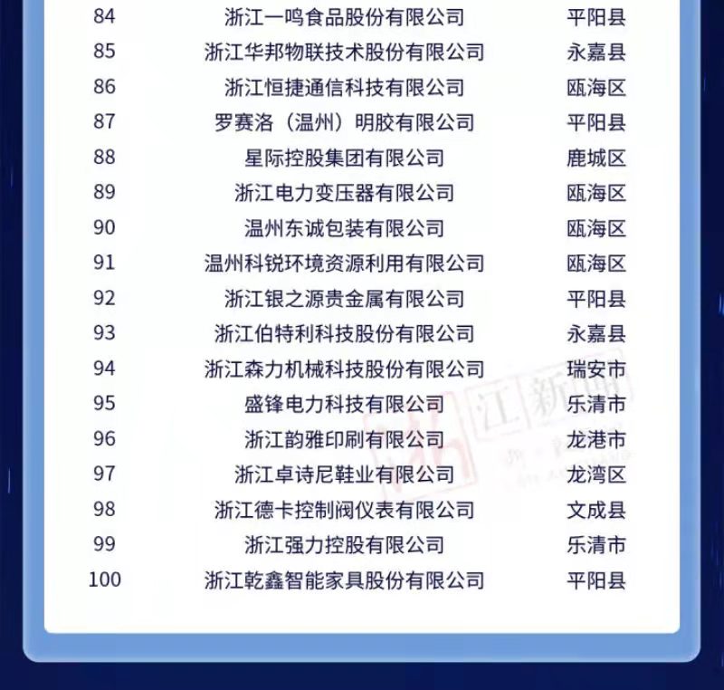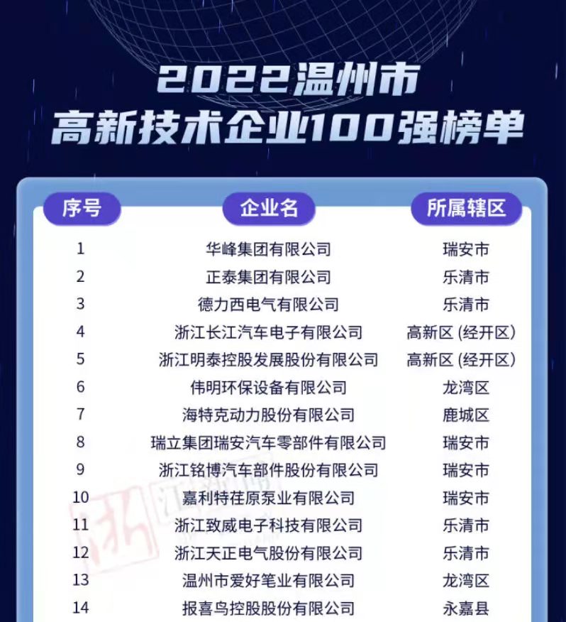 附2022温州市高新技术企业100强榜单: