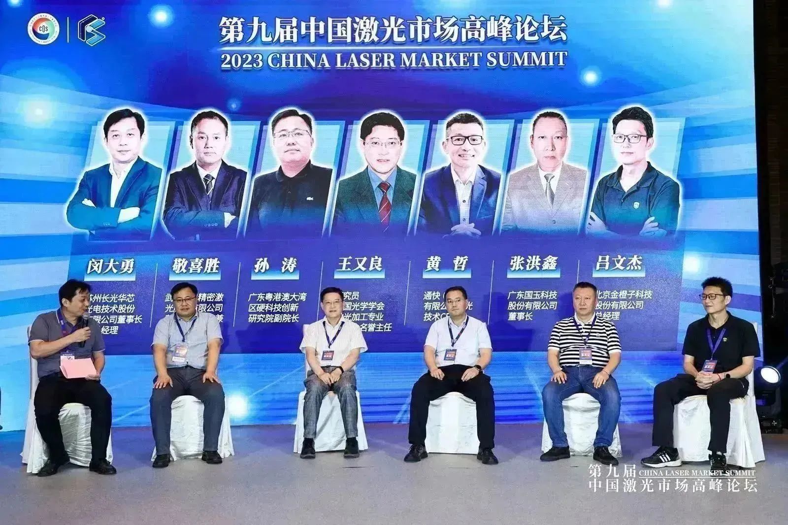 圆桌主持人是苏州长光华芯光电技术股份有限公司董事长兼总经理闵大勇。嘉宾包括: 中国光学学会激光加工专业委员会名誉主任王又良研究员、广东粤港澳大湾区硬科技创新研究院副院长孙涛、武汉华日精密激光份有限公司营销中心总监敬喜胜、广东国玉科技股份有限公司董事长张洪鑫和北京金橙子科技股份有限公司总经理吕文杰。