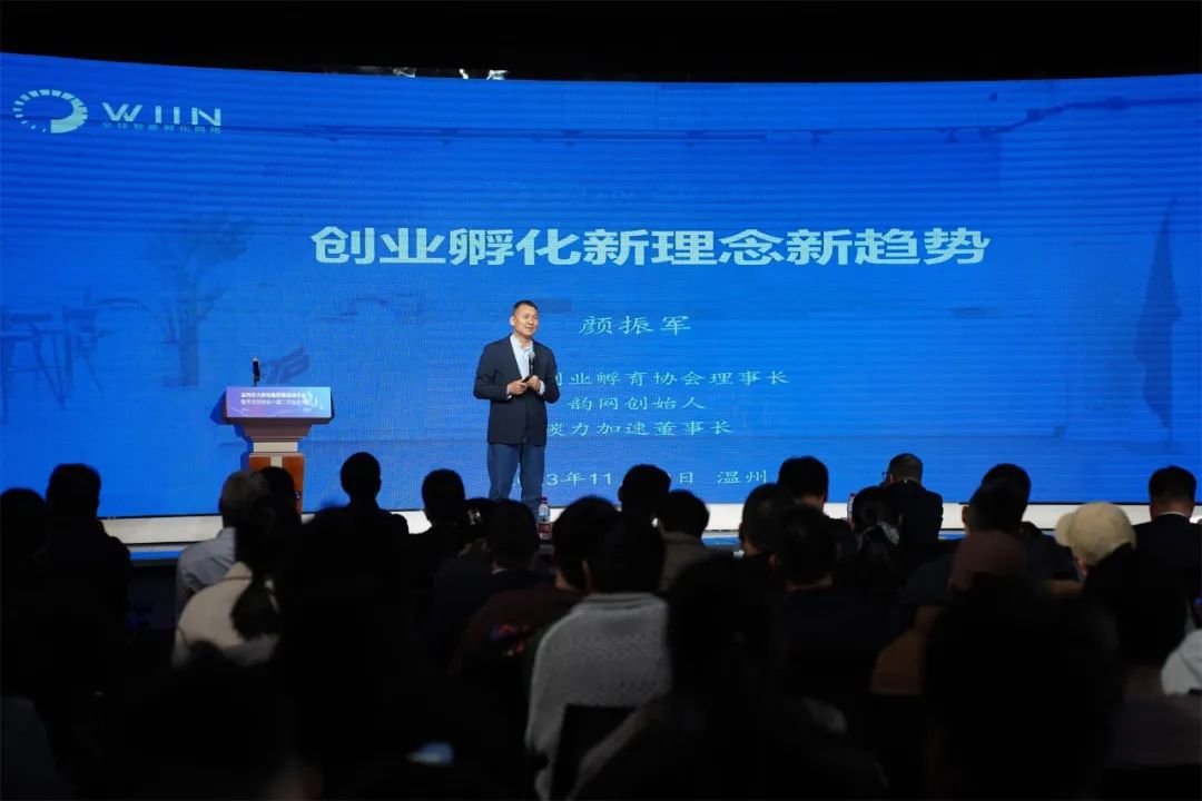 北京创业孵育协会理事长、韵网(全球智能孵化网络)创始人颜振军,以温州大孵化集群建设为背景,围绕创业孵化新理念新趋势,结合国内孵化模式超前、专业能力突出、产业带动作用显著的标杆孵化器,探索孵化器在科技成果转化、孵化加速、产业集群打造全链条中的枢纽作用,聚焦服务高精尖产业发展和未来产业培育提出有针对性的意见建议。