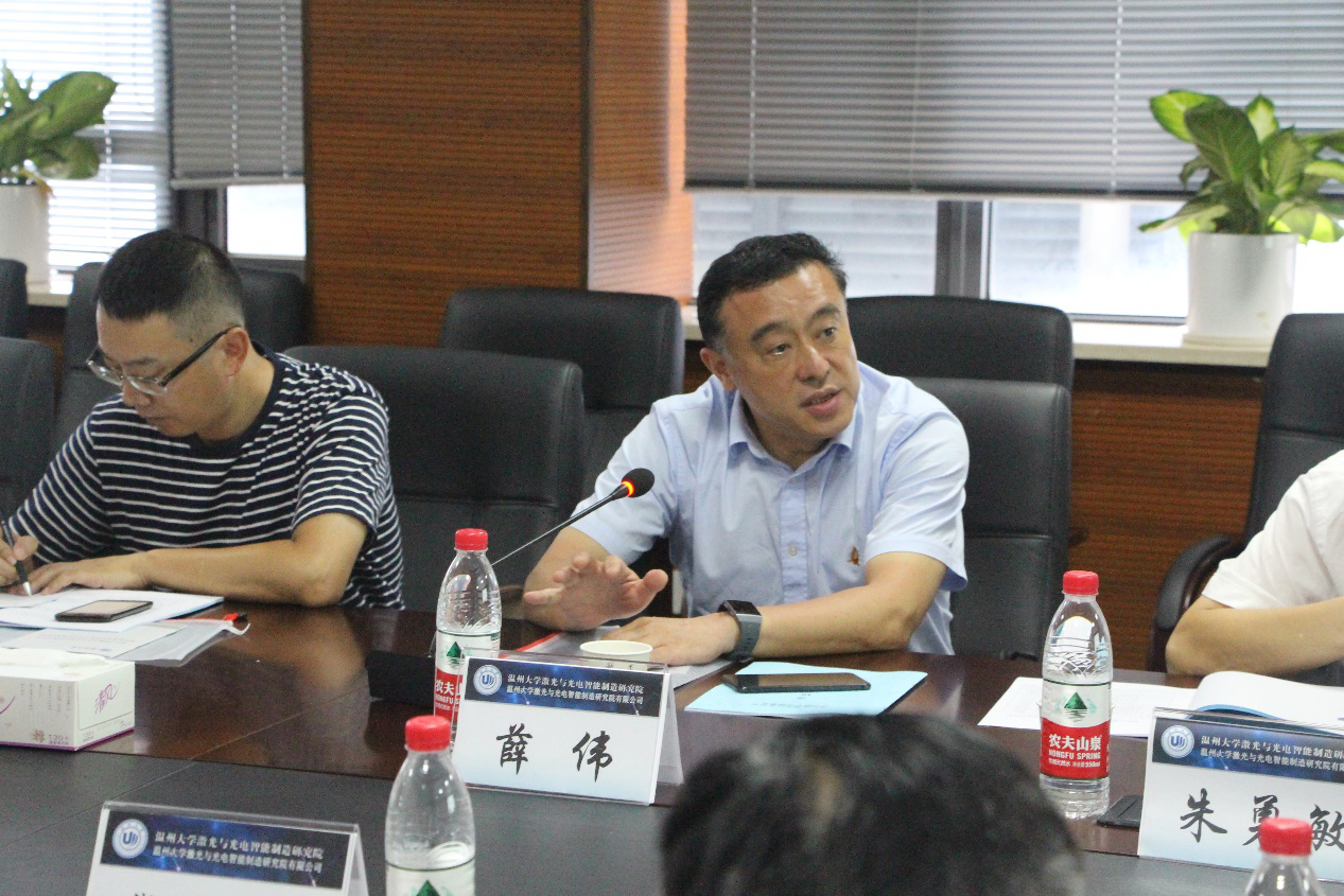 温州市科学技术局项晓东处长介绍了《温州市关于加快推进工业经济高质量发展的若干政策意见》等温州市产业扶持帮助政策精神,给激光光电会员带来了政策红包。龙湾区(高新区)科技局谷知坚科长介绍了浙江省激光与光电产业创新服务综合体建设情况;温州大学激光与光电智能制造研究院马光院长分别从建设的目的和意义、建设目标、实现路径、特色和优势、依托单位基础与优势和未来工作展望六个方面对浙江省激光与光电产业创新服务综合体的建设情况进行了详细的介绍交流。兰州理工温州泵阀研究院、浙江工贸职业技术学院、华中科技大学温州研究院、泰禾激光科技有限公司、浙江华创精密设备、浙江久恒光电科技有限公司等理事单位负责人进行了充分的工作交流与进一步建议。