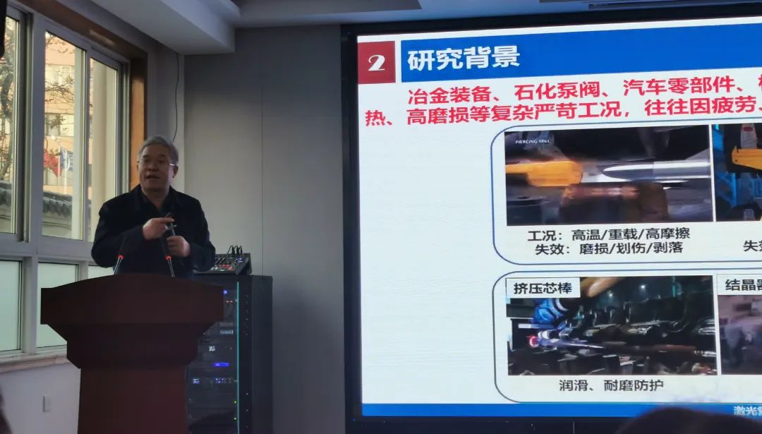 活动开场之后,各位专家依次上台演讲推介,冯爱新秘书长作《激光复合强化技术及其泵阀领域应用》技术成果报告。结合激光热处理、激光冲击和组织性能调控,从能场特性、服役工况、工艺环境、性能指标、科研目标、工程目标等方面,他在演讲中探索了激光复合强化的技术路径,为架构复合强化创新体系提供基础研究逻辑思路,并介绍了电磁场复合激光强化、激光深冷喷丸强化、激光温喷丸强化技术方面的研究进展。